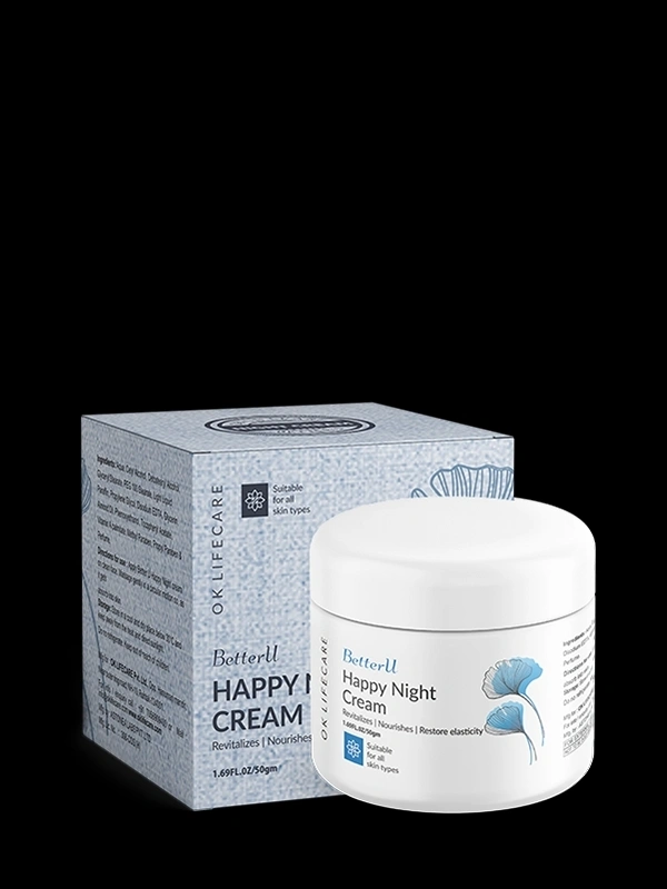 - BetterU Happy Night Cream helps your skin to prevent problems like wrinkles and fine lines due to presence of Hyaluronic acid, which is well known to manage and reduce these types of skin problems: