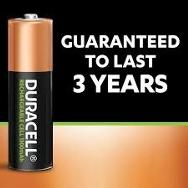 Duracell Rechargeable AA 1300mAh Batteries provide reliable, long-lasting power for your everyday and high-drain devices. Designed for multiple uses, these NiMH batteries can be recharged hundreds of times, making them an eco-friendly and cost-effective alternative to disposable batteries. Pre-charged and ready to use, they work perfectly in wireless game controllers, remote controls, cameras, motorized toys, flashlights, and more. Duracell Rechargeable AA batteries hold power for up to 12 months when not in use and can last up to 3 years when properly maintained. Pair them with any NiMH battery charger for optimal performance.